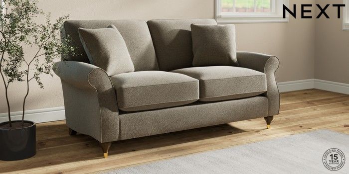 6.12.1 Buy Ashford Relaxed Sit 2 Seater Sofa Chunky Marl Light Olive Green Modern Turned Metal Cap - Mid from the Next UK online shop Click here to use our accessible website