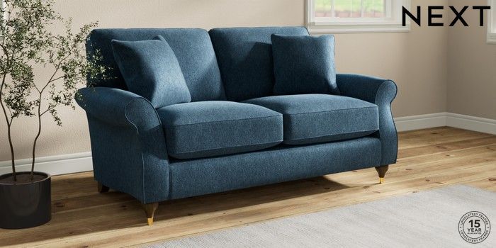 6.12.1 Buy Ashford Relaxed Sit 2 Seater Sofa Cotswold Chenille Dark Blue Modern Turned Metal Cap - Mid from the Next UK online shop Click here to use our accessible website