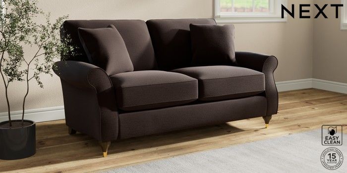 6.12.1 Buy Ashford Relaxed Sit 2 Seater Sofa Fine Chenille Easy Clean Chocolate Brown Modern Turned Metal Cap - Mid from the Next UK online shop Click here to use our accessible website