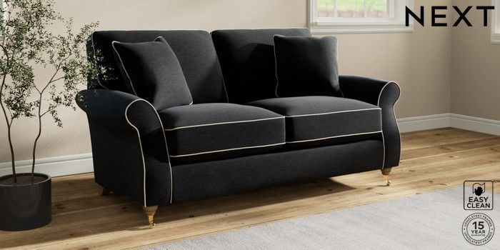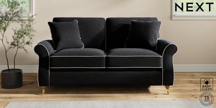 7.3.1 Buy Ashford Relaxed Sit 2 Seater Sofa Fine Chenille with Contrast Black and Oyster Castor - Light from the Next UK online shop Click here to use our accessible website