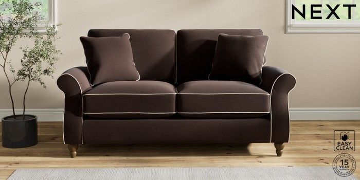 7.3.1 Buy Ashford Relaxed Sit 2 Seater Sofa Fine Chenille with Contrast Chocolate Brown and Oyster Low Turned - Mid from the Next UK online shop Click here to use our accessible website