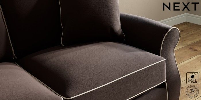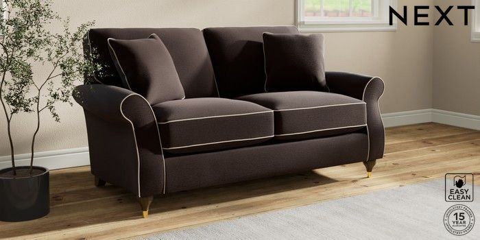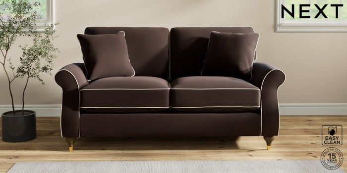 7.3.1 Buy Ashford Relaxed Sit 2 Seater Sofa Fine Chenille with Contrast Chocolate Brown and Oyster Modern Turned Metal Cap - Mid from the Next UK online shop Click here to use our accessible website