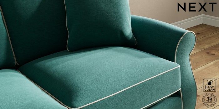 7.3.1 Buy Ashford Relaxed Sit 2 Seater Sofa Fine Chenille with Contrast Dark Juniper Green and Oyster Castor - Dark from the Next UK online shop Click here to use our accessible website