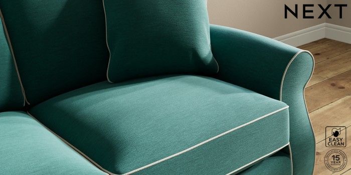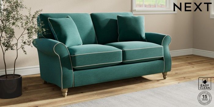 7.3.1 Buy Ashford Relaxed Sit 2 Seater Sofa Fine Chenille with Contrast Dark Juniper Green and Oyster Low Turned - Light from the Next UK online shop Click here to use our accessible website