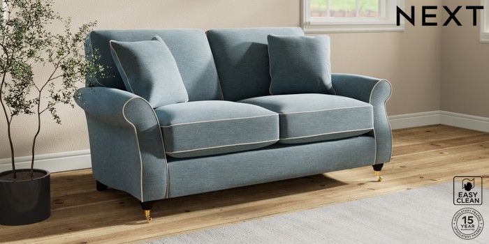 7.3.1 Buy Ashford Relaxed Sit 2 Seater Sofa Fine Chenille with Contrast Mid Blue and Oyster Castor - Dark from the Next UK online shop Click here to use our accessible website