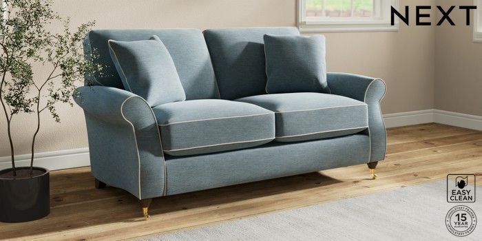 7.3.1 Buy Ashford Relaxed Sit 2 Seater Sofa Fine Chenille with Contrast Mid Blue and Oyster Castor - Mid from the Next UK online shop Click here to use our accessible website