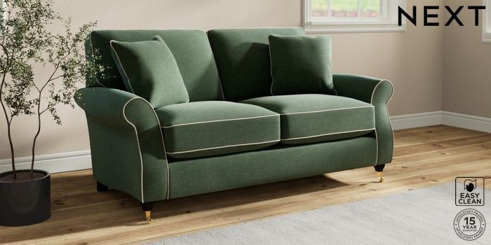 7.3.1 Buy Ashford Relaxed Sit 2 Seater Sofa Fine Chenille with Contrast Mid Khaki Green and Oyster Castor - Dark from the Next UK online shop Click here to use our accessible website