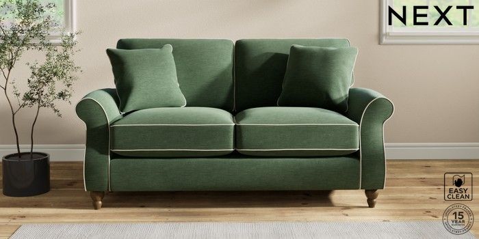 7.3.1 Buy Ashford Relaxed Sit 2 Seater Sofa Fine Chenille with Contrast Mid Khaki Green and Oyster Low Turned - Mid from the Next UK online shop Click here to use our accessible website