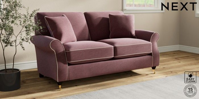 7.3.1 Buy Ashford Relaxed Sit 2 Seater Sofa Fine Chenille with Contrast Mid Mulberry Purple and Oyster Castor - Dark from the Next UK online shop Click here to use our accessible website