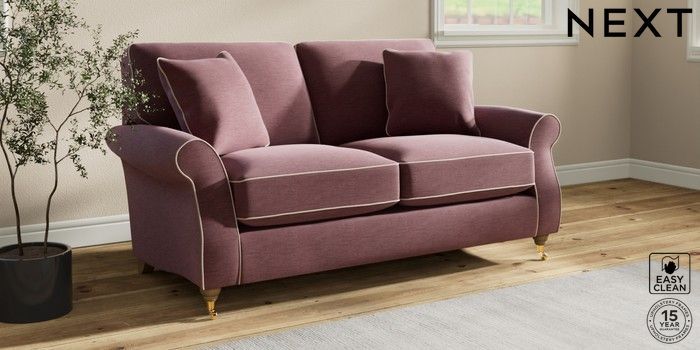 7.3.1 Buy Ashford Relaxed Sit 2 Seater Sofa Fine Chenille with Contrast Mid Mulberry Purple and Oyster Castor - Light from the Next UK online shop Click here to use our accessible website