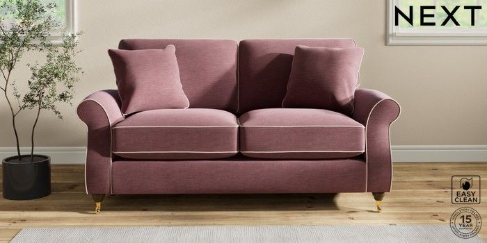 7.3.1 Buy Ashford Relaxed Sit 2 Seater Sofa Fine Chenille with Contrast Mid Mulberry Purple and Oyster Castor - Mid from the Next UK online shop Click here to use our accessible website