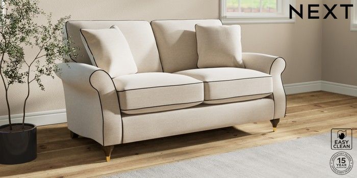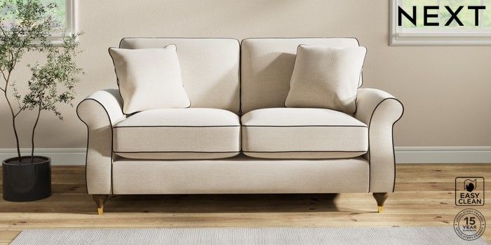 7.3.1 Buy Ashford Relaxed Sit 2 Seater Sofa Fine Chenille with Contrast Oyster and Black Modern Turned Metal Cap - Mid from the Next UK online shop Click here to use our accessible website