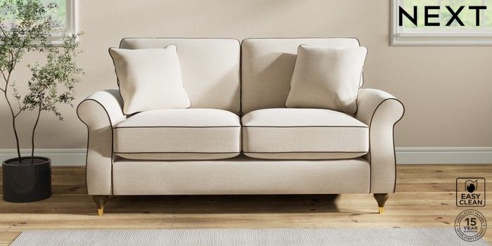 7.3.1 Buy Ashford Relaxed Sit 2 Seater Sofa Fine Chenille with Contrast Oyster and Chocolate Brown Modern Turned Metal Cap - Mid from the Next UK online shop Click here to use our accessible website