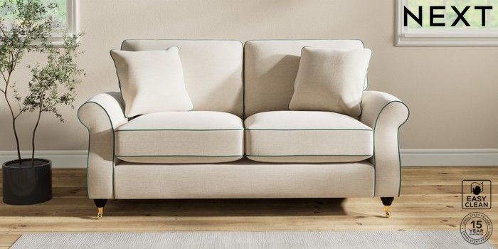 7.3.1 Buy Ashford Relaxed Sit 2 Seater Sofa Fine Chenille with Contrast Oyster and Dark Juniper Green Castor - Dark from the Next UK online shop Click here to use our accessible website