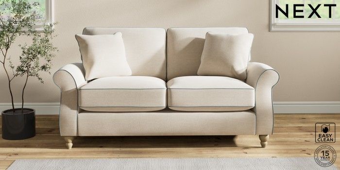 7.3.1 Buy Ashford Relaxed Sit 2 Seater Sofa Fine Chenille with Contrast Oyster and Mid Blue Low Turned - Light from the Next UK online shop Click here to use our accessible website