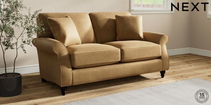6.12.1 Buy Ashford Relaxed Sit 2 Seater Sofa Luxe Chenille Honey Yellow Low Turned - Dark from the Next UK online shop Click here to use our accessible website