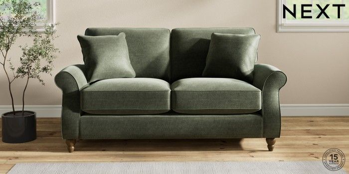 6.12.1 Buy Ashford Relaxed Sit 2 Seater Sofa Luxe Chenille Mid Green Low Turned - Mid from the Next UK online shop Click here to use our accessible website