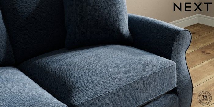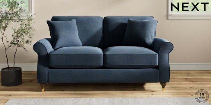 6.12.1 Buy Ashford Relaxed Sit 2 Seater Sofa Ripple Chenille Dark Blue Modern Turned Metal Cap - Mid from the Next UK online shop Click here to use our accessible website