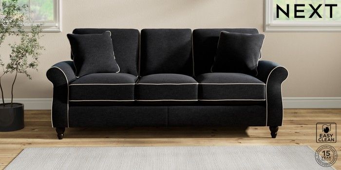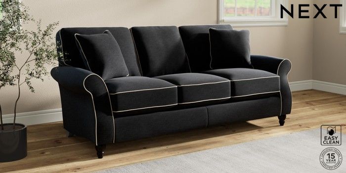 7.3.1 Buy Ashford Relaxed Sit 3 Cushion 3 Seater Sofa Fine Chenille with Contrast Black and Oyster Low Turned - Dark from the Next UK online shop Click here to use our accessible website