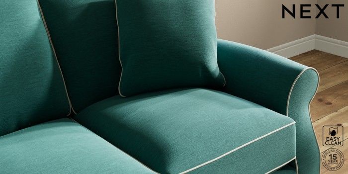 7.3.1 Buy Ashford Relaxed Sit 3 Cushion 3 Seater Sofa Fine Chenille with Contrast Dark Juniper Green and Oyster Castor - Light from the Next UK online shop Click here to use our accessible website