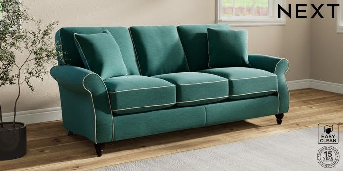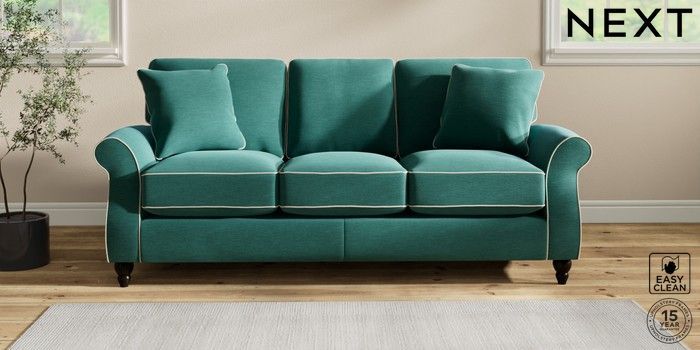 7.3.1 Buy Ashford Relaxed Sit 3 Cushion 3 Seater Sofa Fine Chenille with Contrast Dark Juniper Green and Oyster Low Turned - Dark from the Next UK online shop Click here to use our accessible website