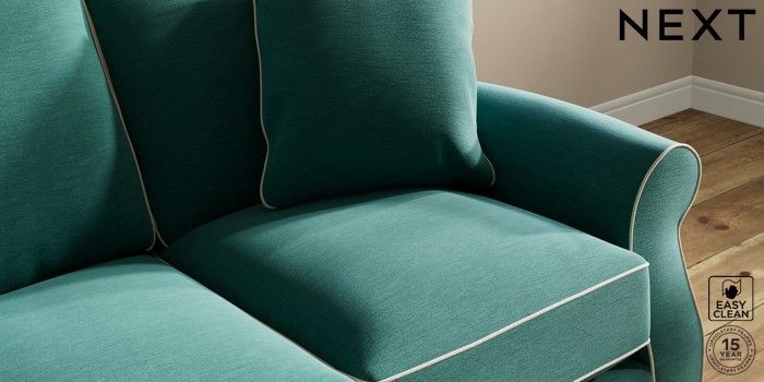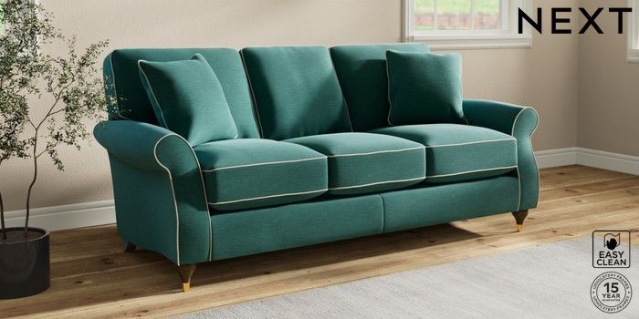 7.3.1 Buy Ashford Relaxed Sit 3 Cushion 3 Seater Sofa Fine Chenille with Contrast Dark Juniper Green and Oyster Modern Turned Metal Cap - Mid from the Next UK online shop Click here to use our accessible website