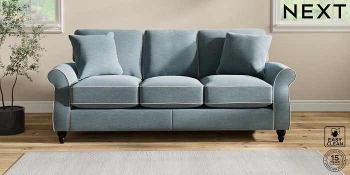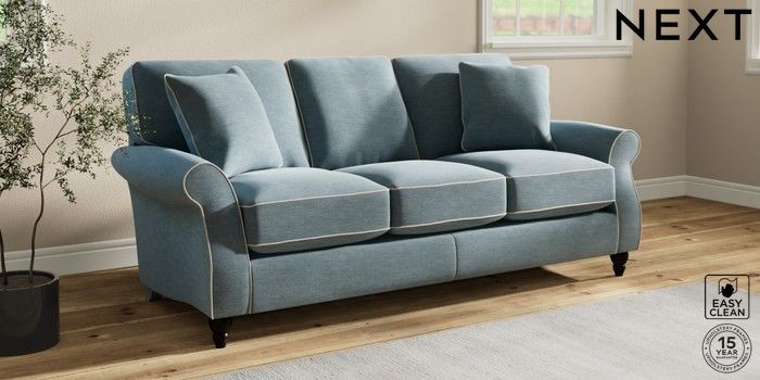 7.3.1 Buy Ashford Relaxed Sit 3 Cushion 3 Seater Sofa Fine Chenille with Contrast Mid Blue and Oyster Low Turned - Dark from the Next UK online shop Click here to use our accessible website