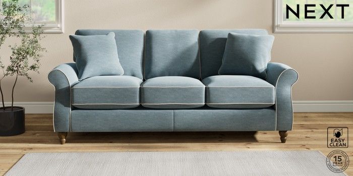 7.3.1 Buy Ashford Relaxed Sit 3 Cushion 3 Seater Sofa Fine Chenille with Contrast Mid Blue and Oyster Low Turned - Mid from the Next UK online shop Click here to use our accessible website