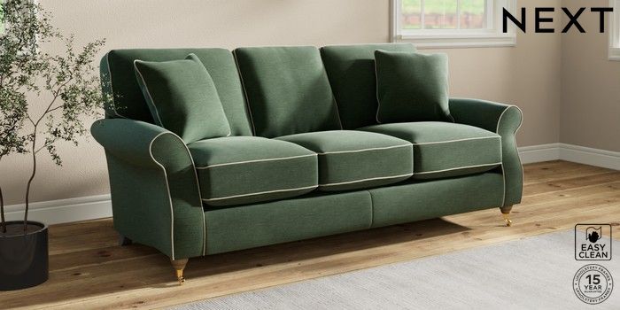 7.3.1 Buy Ashford Relaxed Sit 3 Cushion 3 Seater Sofa Fine Chenille with Contrast Mid Khaki Green and Oyster Castor - Light from the Next UK online shop Click here to use our accessible website