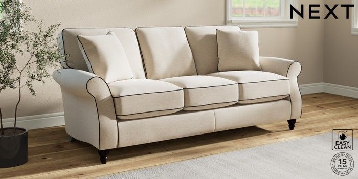 7.3.1 Buy Ashford Relaxed Sit 3 Cushion 3 Seater Sofa Fine Chenille with Contrast Oyster and Black Low Turned - Dark from the Next UK online shop Click here to use our accessible website