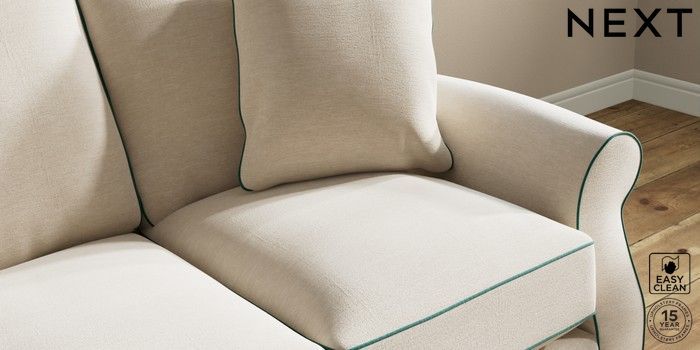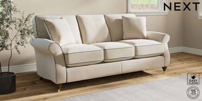 7.3.1 Buy Ashford Relaxed Sit 3 Cushion 3 Seater Sofa Fine Chenille with Contrast Oyster and Dark Juniper Green Modern Turned Metal Cap - Mid from the Next UK online shop Click here to use our accessible website