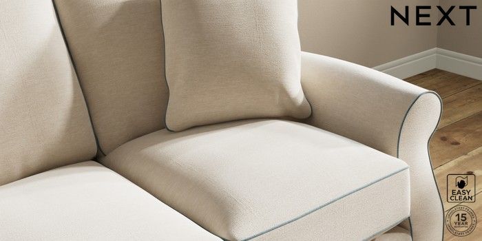 7.3.1 Buy Ashford Relaxed Sit 3 Cushion 3 Seater Sofa Fine Chenille with Contrast Oyster and Mid Blue Modern Turned Metal Cap - Mid from the Next UK online shop Click here to use our accessible website