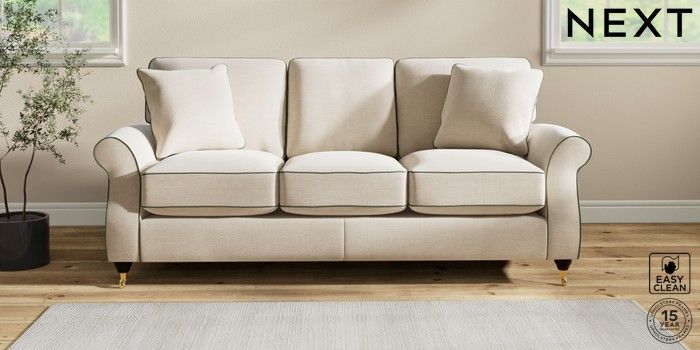 7.3.1 Buy Ashford Relaxed Sit 3 Cushion 3 Seater Sofa Fine Chenille with Contrast Oyster and Mid Khaki Green Castor - Dark from the Next UK online shop Click here to use our accessible website
