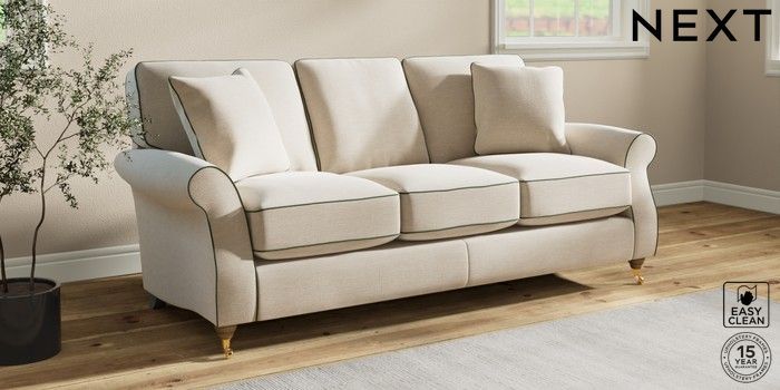 7.3.1 Buy Ashford Relaxed Sit 3 Cushion 3 Seater Sofa Fine Chenille with Contrast Oyster and Mid Khaki Green Castor - Light from the Next UK online shop Click here to use our accessible website
