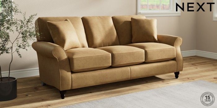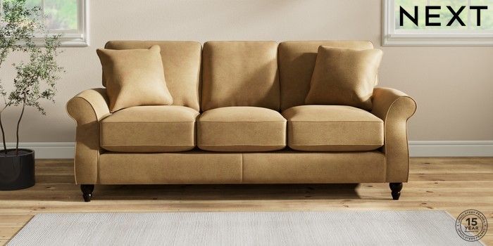 6.12.1 Buy Ashford Relaxed Sit 3 Cushion 3 Seater Sofa Luxe Chenille Honey Yellow Low Turned - Dark from the Next UK online shop Click here to use our accessible website