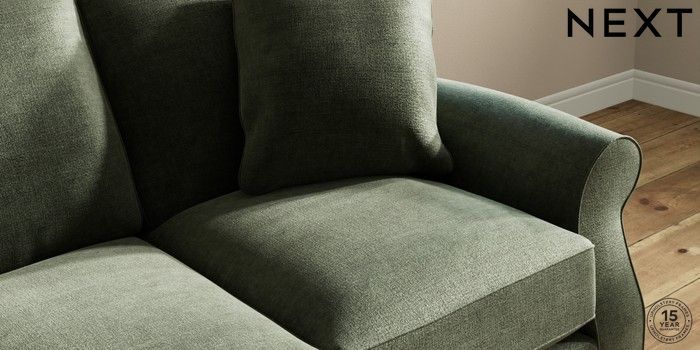 6.12.1 Buy Ashford Relaxed Sit 3 Cushion 3 Seater Sofa Luxe Chenille Mid Green Castor - Dark from the Next UK online shop Click here to use our accessible website