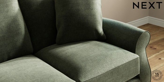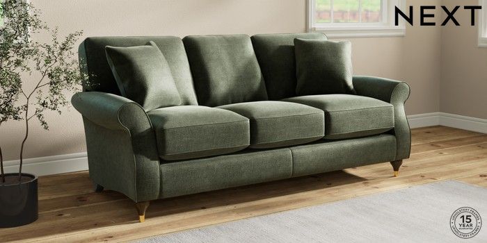 6.12.1 Buy Ashford Relaxed Sit 3 Cushion 3 Seater Sofa Luxe Chenille Mid Green Modern Turned Metal Cap - Mid from the Next UK online shop Click here to use our accessible website