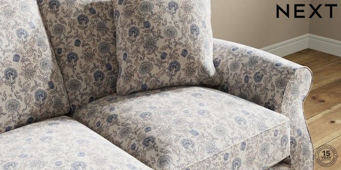 7.3.1 Buy Ashford Relaxed Sit 3 Cushion 3 Seater Sofa Relaxed Linen Look Print Woodblock Floral Blue Low Turned - Mid from the Next UK online shop Click here to use our accessible website