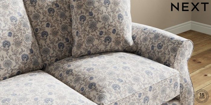 7.3.1 Buy Ashford Relaxed Sit 3 Cushion 3 Seater Sofa Relaxed Linen Look Print Woodblock Floral Blue Modern Turned Metal Cap - Mid from the Next UK online shop