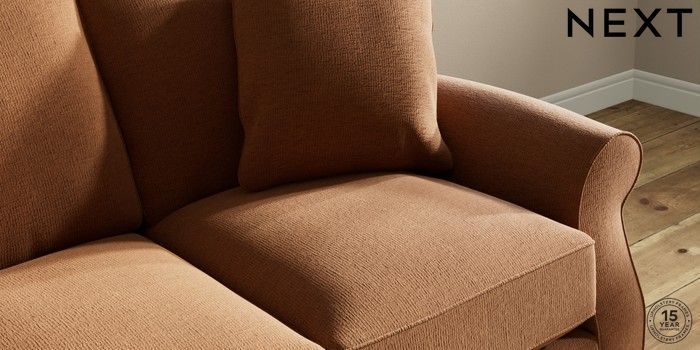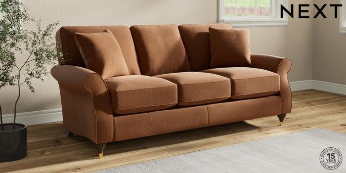 6.12.1 Buy Ashford Relaxed Sit 3 Cushion 3 Seater Sofa Ripple Chenille Mid Rust Brown Modern Turned Metal Cap - Mid from the Next UK online shop Click here to use our accessible website
