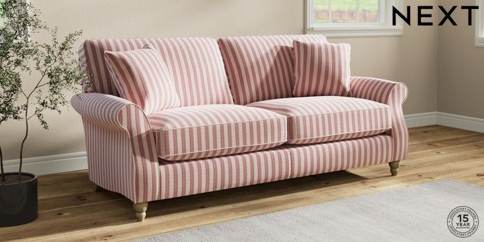 7.3.1 Buy Ashford Relaxed Sit 3 Seater Sofa Bold Chenille Stripe Dark Pink Low Turned - Light from the Next UK online shop