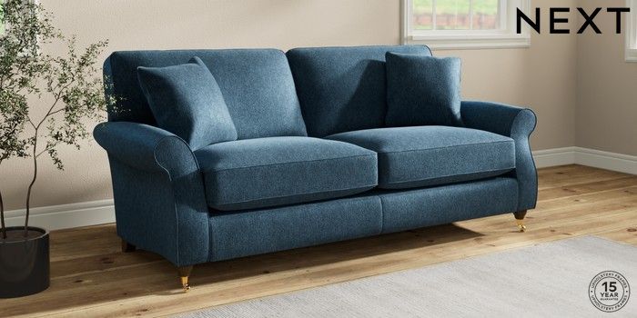 6.12.1 Buy Ashford Relaxed Sit 3 Seater Sofa Cotswold Chenille Dark Blue Castor - Mid from the Next UK online shop Click here to use our accessible website