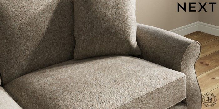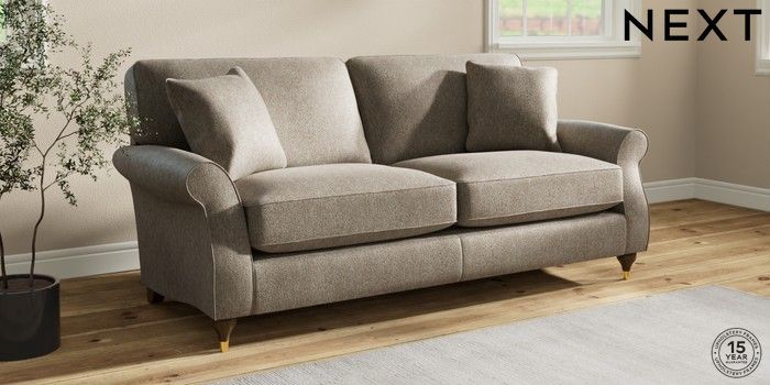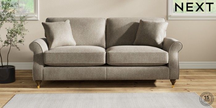 6.12.1 Buy Ashford Relaxed Sit 3 Seater Sofa Cotswold Chenille Mid Mink Brown Modern Turned Metal Cap - Mid from the Next UK online shop Click here to use our accessible website