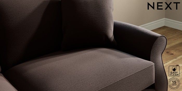 6.12.1 Buy Ashford Relaxed Sit 3 Seater Sofa Fine Chenille Easy Clean Chocolate Brown Castor - Mid from the Next UK online shop Click here to use our accessible website