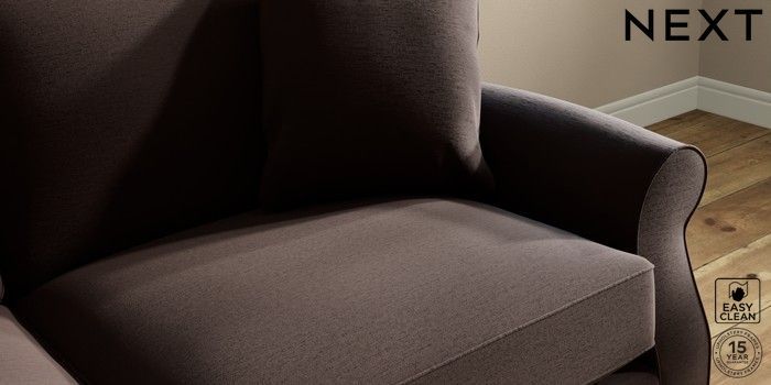 6.12.1 Buy Ashford Relaxed Sit 3 Seater Sofa Fine Chenille Easy Clean Chocolate Brown Modern Turned Metal Cap - Mid from the Next UK online shop Click here to use our accessible website