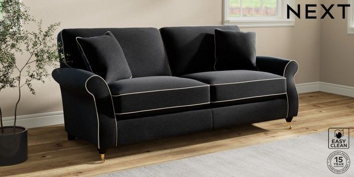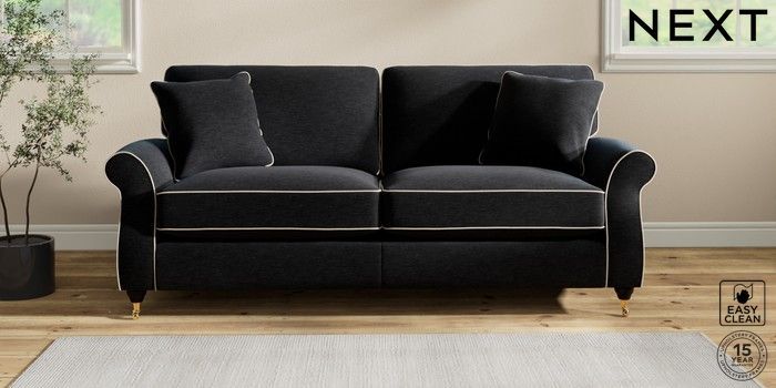 7.3.1 Buy Ashford Relaxed Sit 3 Seater Sofa Fine Chenille with Contrast Black and Oyster Castor - Dark from the Next UK online shop Click here to use our accessible website