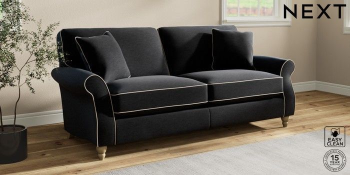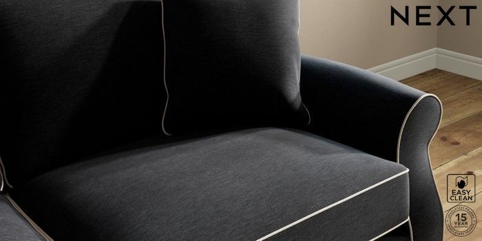 7.3.1 Buy Ashford Relaxed Sit 3 Seater Sofa Fine Chenille with Contrast Black and Oyster Low Turned - Light from the Next UK online shop Click here to use our accessible website