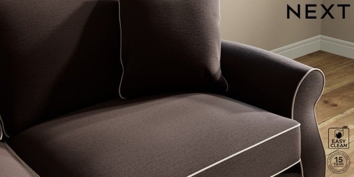 7.3.1 Buy Ashford Relaxed Sit 3 Seater Sofa Fine Chenille with Contrast Chocolate Brown and Oyster Castor - Dark from the Next UK online shop Click here to use our accessible website