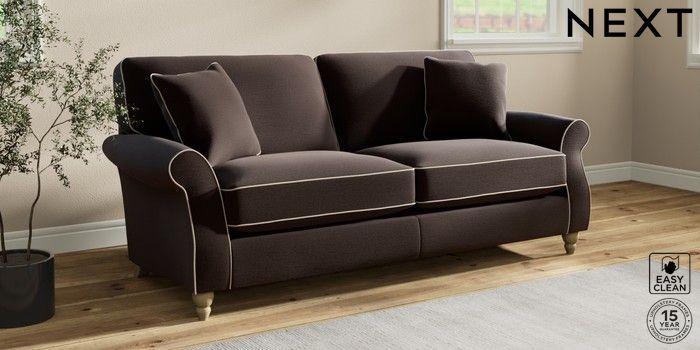 7.3.1 Buy Ashford Relaxed Sit 3 Seater Sofa Fine Chenille with Contrast Chocolate Brown and Oyster Low Turned - Light from the Next UK online shop Click here to use our accessible website