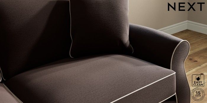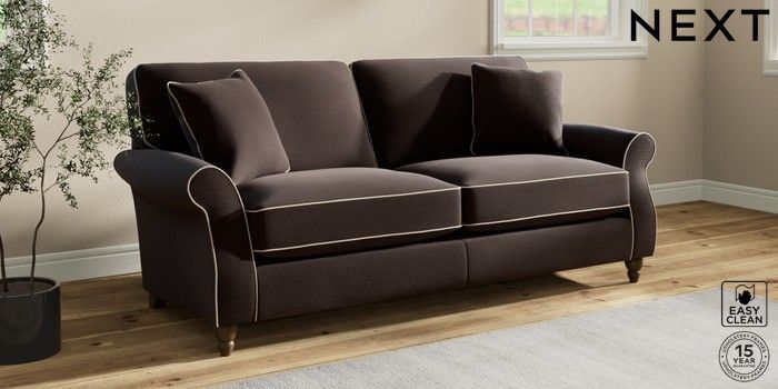 7.3.1 Buy Ashford Relaxed Sit 3 Seater Sofa Fine Chenille with Contrast Chocolate Brown and Oyster Low Turned - Mid from the Next UK online shop Click here to use our accessible website